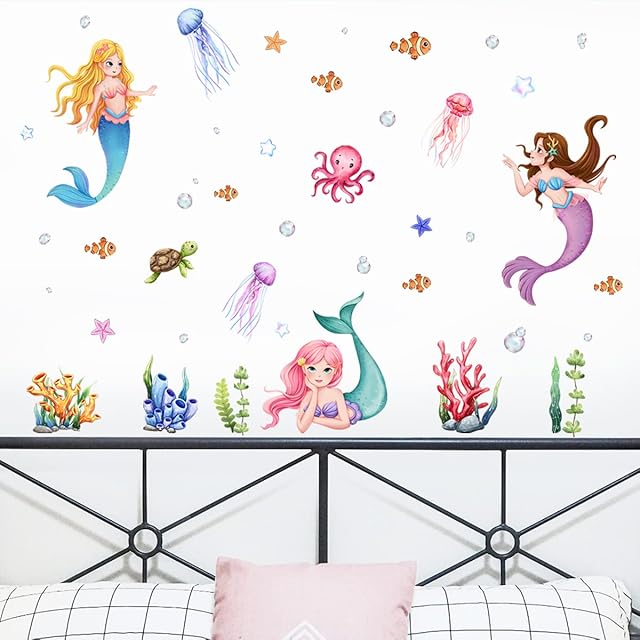 ZARROUEA 海底人魚です ウォールステッカー 海 3D 海底の世界ですイルカ 海藻 巨形水母 くじら 魚 かめ かわいい動物 保育園 子供部屋装飾 ホームアート 壁画 絵画 バスルーム お風呂 浴室に wall stickers 壁飾り インテリア Diy wall decoration(113*75cm)