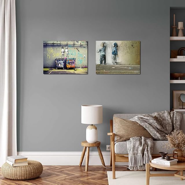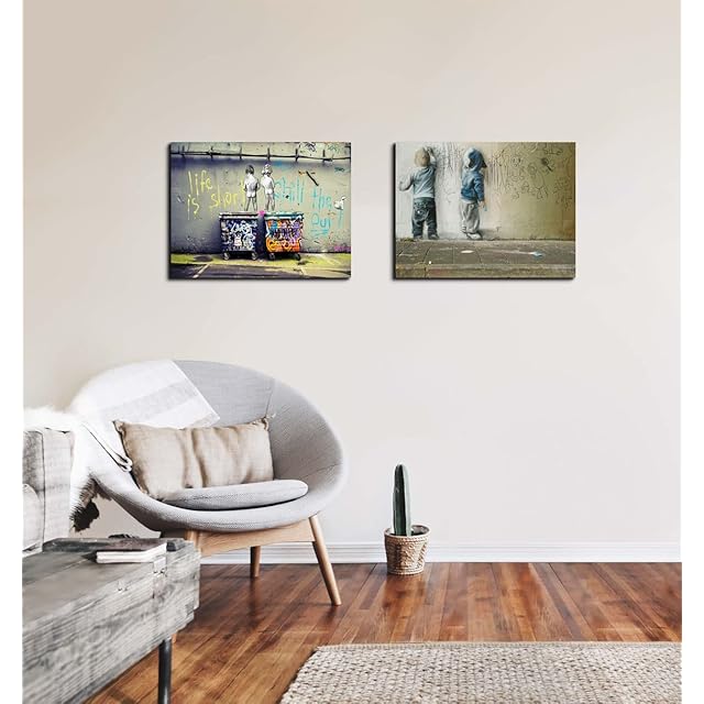 Banksy 絵画 ポスター バンクシー アートパネル 写真 2枚 玄関 インテリア 風水 玄関 アートポスタ ウォールアート モダン 現代 ポスター 装飾画 部屋飾り 壁の絵 壁掛け ソファの背景絵画 木枠付きの完成品