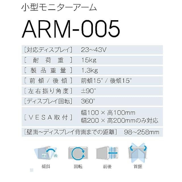 朝日木材加工 モニターアーム 壁掛けタイプ WALL FIT MOUNT 23~43型 シルバー ARM-005