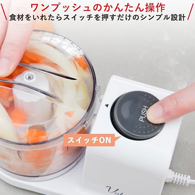 【シンプル操作】食材を入れたら電源スイッチを押すだけのシンプル設計なので、初めて使う方でも簡単にお使いいただけます。