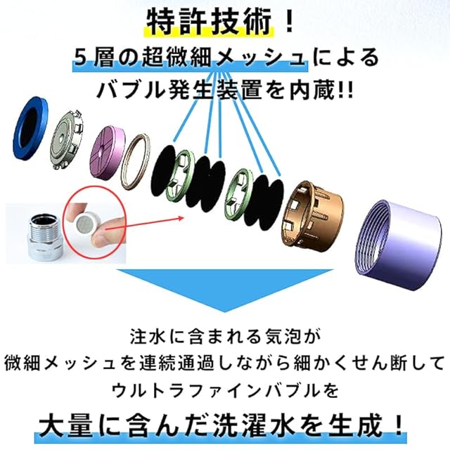 ✅【 特許取得 】<特許6663464号>最高ウルトラファインバブル発生システムにより、繊維の奥の汚れにまで働きかける。洗剤はもちろん柔軟剤・漂白剤の効果まで徹底サポート!