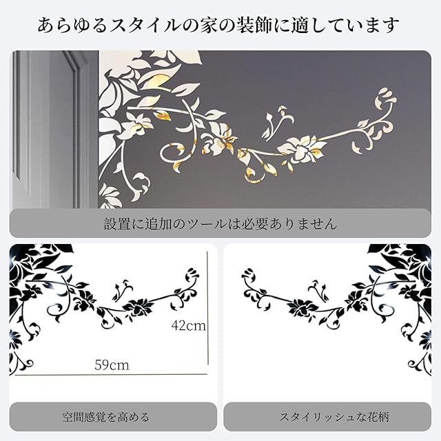 【幅広い用途】この花柄ミラーウォールステッカーは、木材、ガラス、窓、クローゼットなど、滑らかで乾燥した埃のない表面であればどこにでも貼り付けることができます。リビングルーム、寝室、子供部屋、ダイニングルーム、キッチン、ジム、家、オフィス、廊下、ポーチ、ショッピングモール、公園、美術館などに最適です。