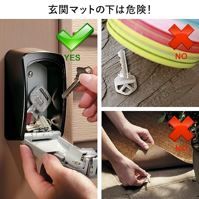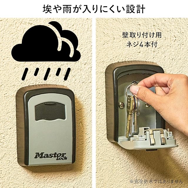 【屋外使用に安心】・玄関脇の壁などに固定して設置するタイプ。・耐久性の高いメタル構造の本体。・こじ開けに強いハイセキュリティ仕様。・ダイヤル部をほこりや汚れから守るカバー付き。