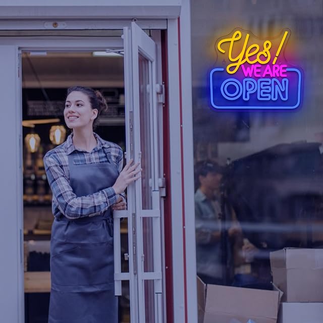 YES We're Openネオンサイン看板 LED ネオンライト USB給電 ネオンサイン 34.5cm x 30cm 簡単取り付け 外国人客対応サインホテル