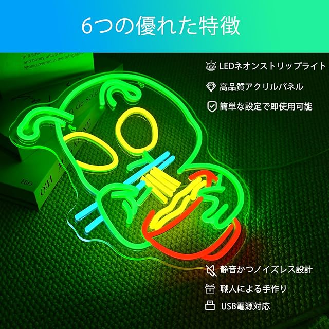 パーソナライズされたネオンサイン: ラーメンを食べるエイリアンのネオンサインは目を引き、部屋やパーティー、ゲームスペースに活気ある雰囲気を作り出します。この忘れられないネオンウォールデコレーションで、あなたの壁を明るくアーティスティックに照らしましょう。