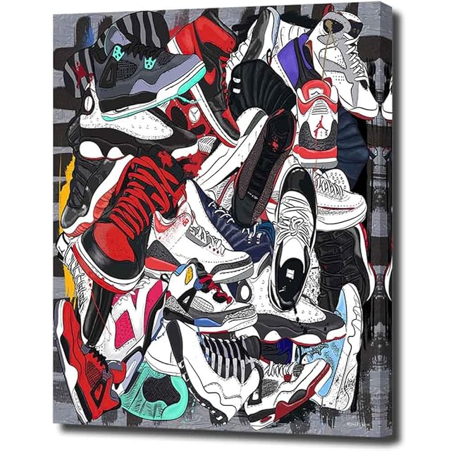アートパネル スニーカー ストリート グラフティ W30cm H40cm アートフレーム 絵画 キャンバス 額付き ウォールアート ポップアート モダンアート 壁掛け インテリア 装飾