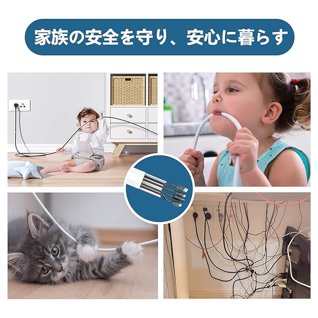3【安全性】お子様やペットのいたずらでケーブルが切れてしまう心配、部屋で配線がごちゃごちゃしてしまう心配が一気に解決できます。足で配線を引っ掛けるや配線に触れて怪我をするといったことを防ぎます。家族の安全をを守ります。お部屋もスッキリ!