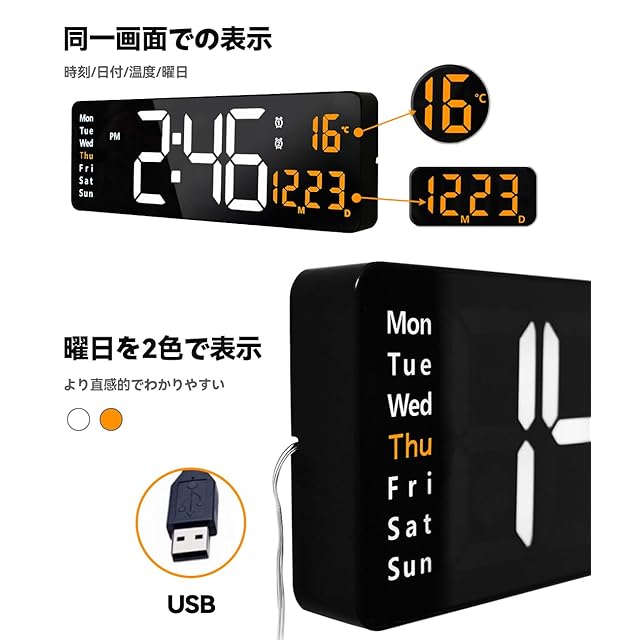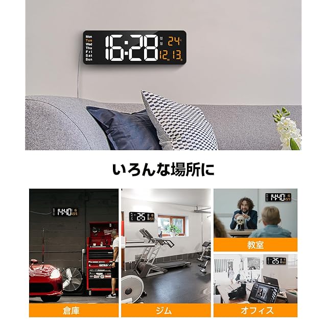 【幅広い用途】このデジタル時計は、リビングルーム、キッチン、ガレージ、農家、オフィス、倉庫、教室、ジム、ショップ、子供部屋に適しています。 また、友人、パートナー、高齢者への最高の贈り物でもあります。(注意:アダプターが付属されていません、USBポートまたは5V/1Aおよび5V/2Aアダプターのみに接続してください。 時計を動かすにはアダプターが必要です。 バッテリー電源は、主電源停電時に時計設定を保存するためにのみ機能します。)