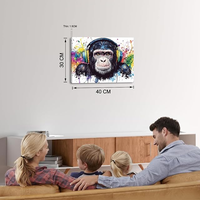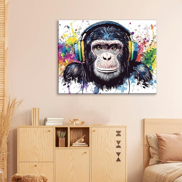 PIY PAINTING 動物インテリア絵画、 チンパンジーの芸術装飾画、 リビングルームの的な絵画、音楽を聴く猿画、アートプリントキャンバス、ウォールアート、 簡単な取り付け、 ベッド リビング 書斎 オフィス ヨガ 寮 壁飾り、30x40cm