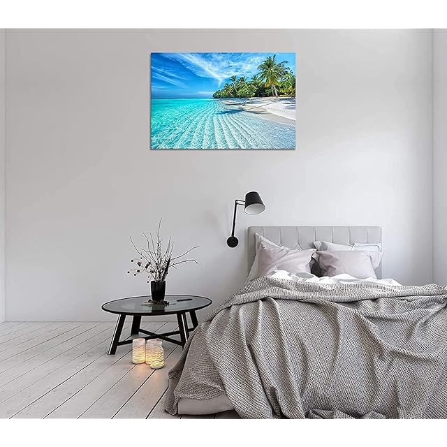 海の景色 アートパネル 海 ポスター 青空 白雲 海浜 太陽 絵画 風景画 壁掛け 木枠付きの完成品 (30x40cm)