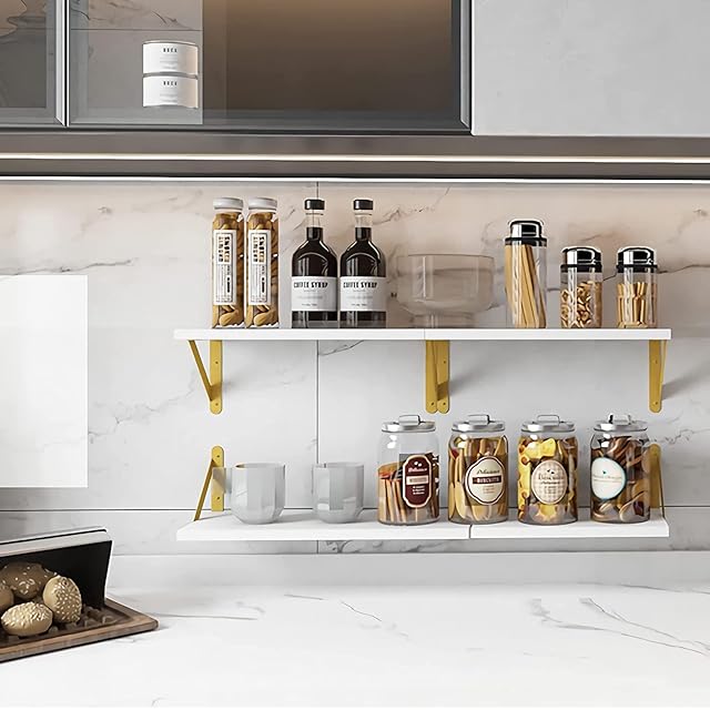 HASONA ウォールシェルフ 3個セット 壁掛け棚 壁 棚 ラック おしゃれ 天然木製 ウォールラック 飾り棚 玄関/キッチン/トイレ/洗面所/寝室 取り付け簡単 ホワイト-ゴールド