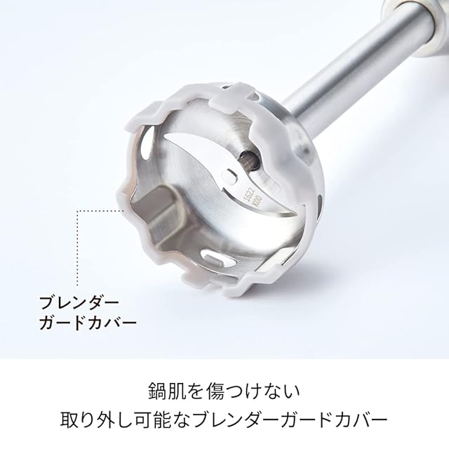✅【鍋肌を傷つけないブレンダーガードカバー付き】鍋肌を傷つけず、飛び散りも防止する取り外し可能なカバー付き。鍋やボウルに直接使えるから、調理がスムーズ。