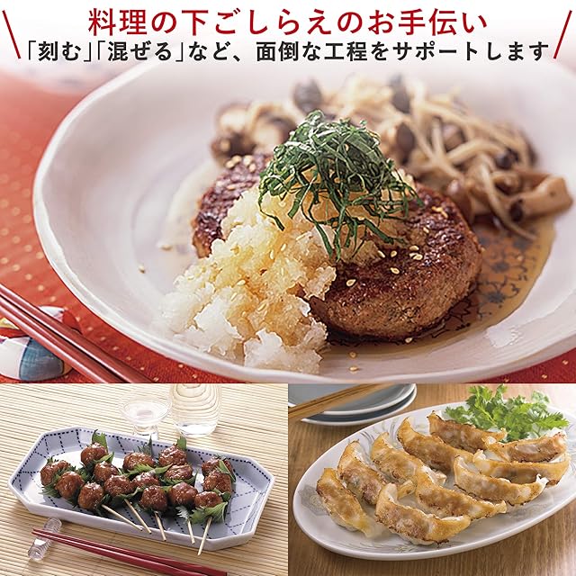 【料理の下ごしらえを簡単に】「刻む」「混ぜる」の2WAYで料理をサポートするフードプロセッサー。みじん切りやハンバーグのタネ作りなどの手間がかかる下ごしらえが簡単・スピーディにできます。