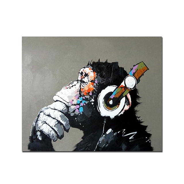 Fokenzary手書き 絵画 壁掛け油彩画音楽を聴く猿抽象画現代ポップアート玄関、リビングと寝室の飾りに最高20x24in(50cm x 60cm)