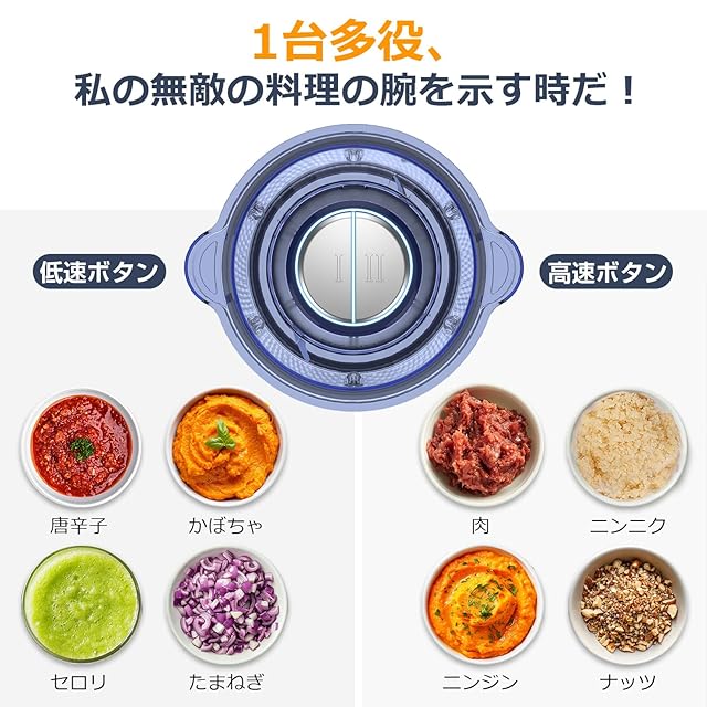 ♫【時間を節約して効率的に刻む】フードチョッパーの強力な純銅モーターとS字型2層ステンレス刃のおかげで、この電動ブレンダーは、食材を約10秒以内で刻むことができます。鋭利な刃で、鋭い切れ味、時間と手間を賢く省いて、料理に合わせて大活躍。
