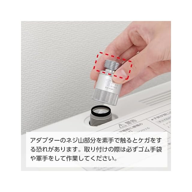 【洗濯機の給水口に取り付け】洗濯機と給水ホースの間に取り付けるだけ!工具なしで取付け頂けます。(ネジ部分を素手で触るとケガをする恐れがあります。取り付けの際には必ずゴム手袋や軍手をして作業してください。)