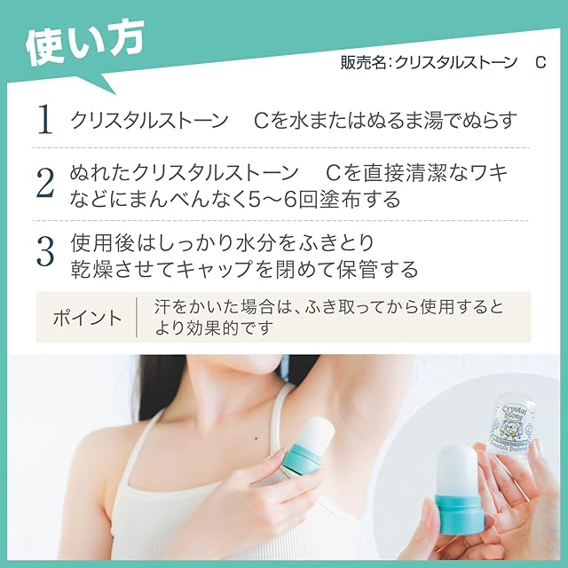 汗・ニオイに悩むユーザーから選ばれている3つの理由 ◆「天然アルム石のチカラ」に着目して、汗・ニオイを元から防ぐ! ※天然アルム石:ミョウバン ◆ワキに“直ヌリ"で有効成分がしっかり密着し、朝ぬって夜までつづいちゃう! ◆ぬった後は、すぐにサラサラ。 ベタつき・白残りしにくくすぐに洋服が着られる!
