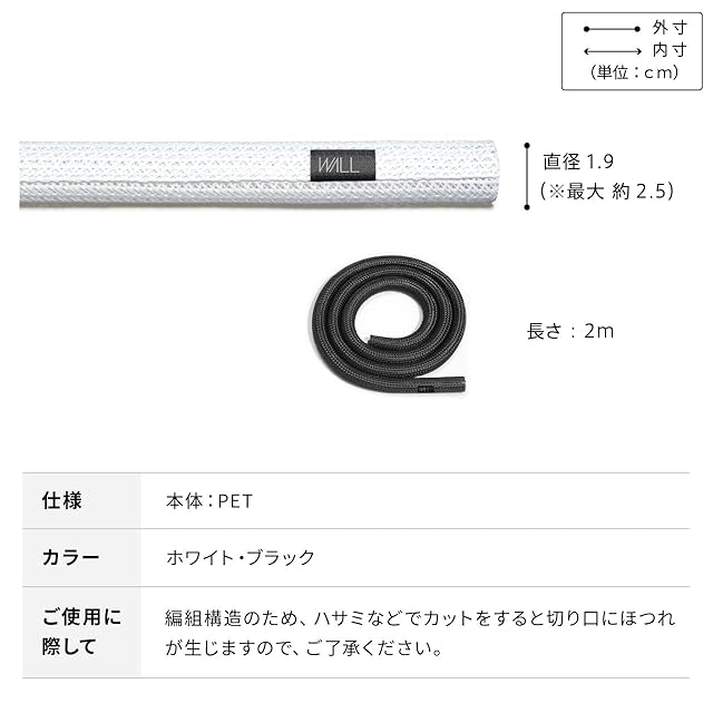 【サイズ】直径:1.9cm(最大:約2.5cm)・長さ:2m