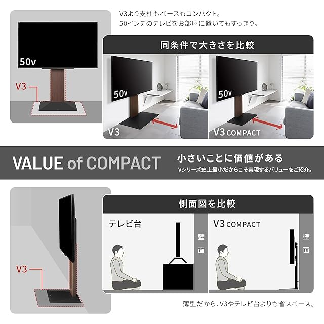 EQUALS イコールズ テレビ台 壁寄せテレビスタンド WALL V3 COMPACT ロータイプ 24~55V対応 サテンホワイト
