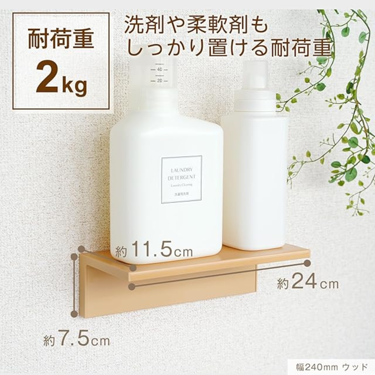 レック(LEC) SOROU ウォールラック 幅240mm (木目調 ベージュ) / 日本製/ドライバー不要/水に強い樹脂製