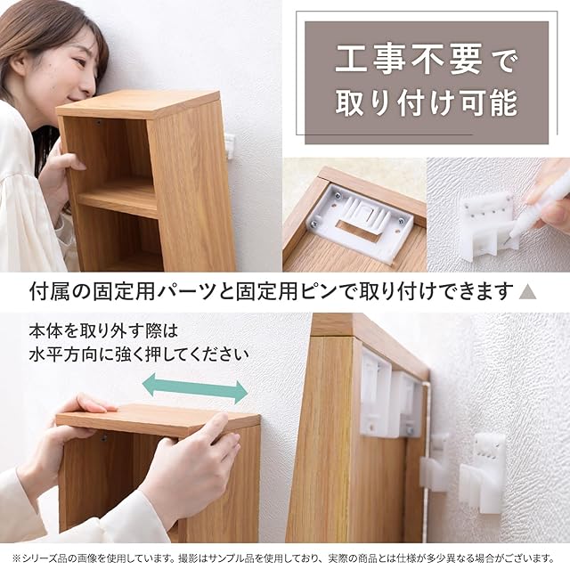 ●本体サイズ:幅95×奥行23.5×高さ35cm●耐荷重 : 全体19kg(天板 : 10kg、棚板1枚あたり : 3kg)●構造部材 : 本体/プリント紙化粧パーティクルボード、プリント紙化粧繊維板 固定用パーツ/ポリアセタール 固定用ピン/金属(ステンレス鋼)