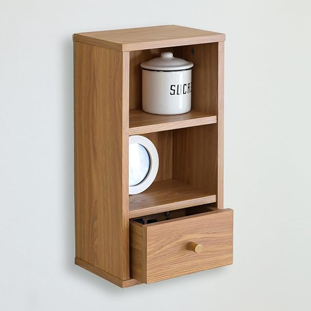山善(YAMAZEN) ウォールシェルフ 壁掛け棚 小引出し付き ラック 飾り棚 壁掛け 収納 壁面収納 棚 幅20×奥行16(取っ手含む)×高さ40cm アートウォールユニット 省スペース 組立品 オーク FWCD-4020(OAK)