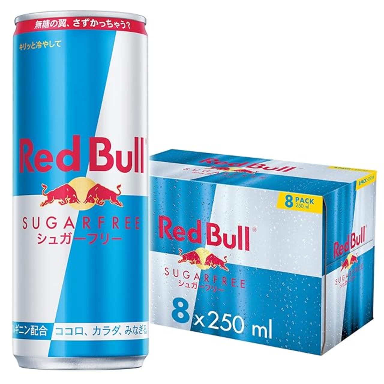 250mlのレッドブル・エナジードリンク シュガーフリーには、80mgのカフェインが含まれており、これはカップ一杯のコーヒーに含まれるカフェイン量とほぼ同等です。