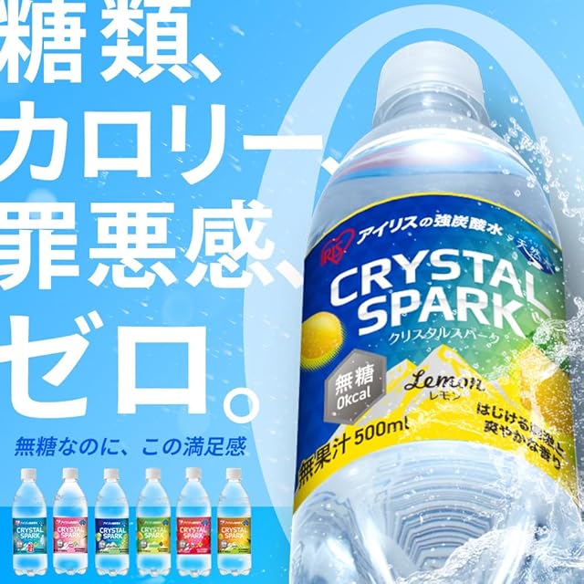 CRYSTAL SPARK(クリスタルスパーク) 炭酸水 500ml ×24本 レモン 強炭酸水 アイリスオーヤマ ペットボトル ケース 500ミリリットル ボトル 割り材
