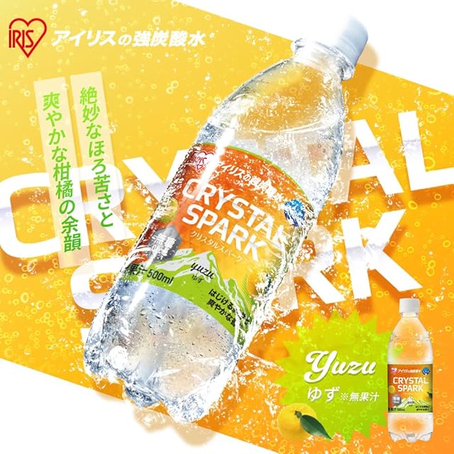 CRYSTAL SPARK(クリスタルスパーク) 炭酸水 500ml ×24本 ユズ 強炭酸水 アイリスオーヤマ ペットボトル ケース 500ミリリットル ボトル 割り材