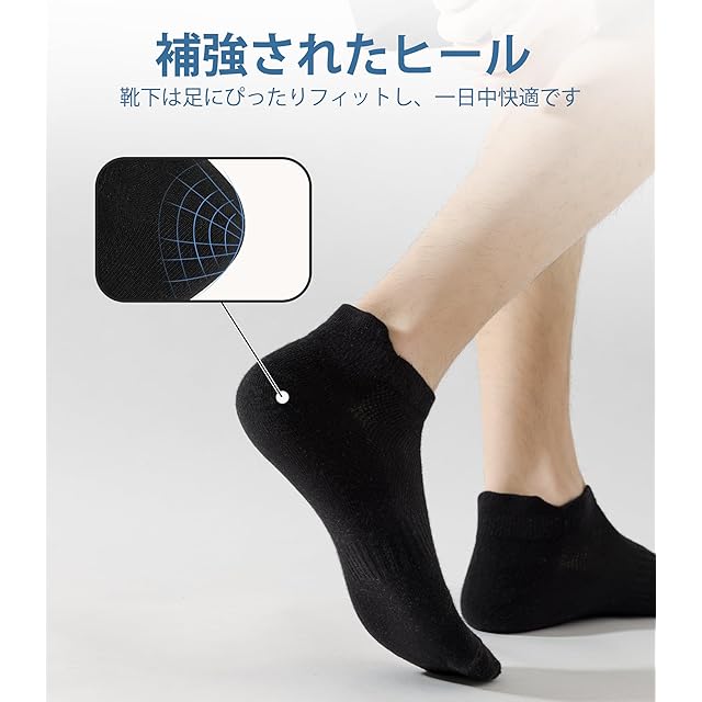 [Josnown] 靴下 メンズ 5足セットくるぶしソックス 高級綿 吸汗消臭 ランニング スポーツソックス
