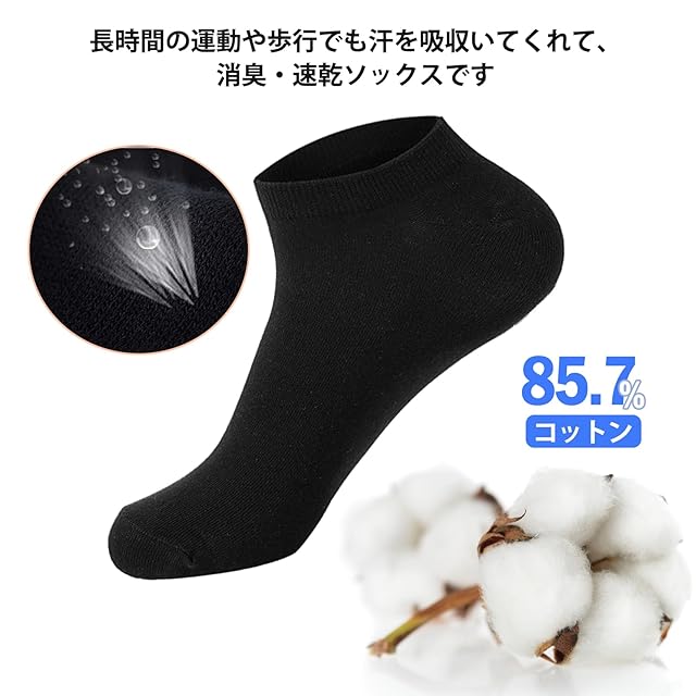 [Josnown] 強化版 靴下 メンズ 5足組セット 通気消臭 ビジネス カジュアル 高級綿 くるぶし スポーツ ソックス 24.0-28.0 cm