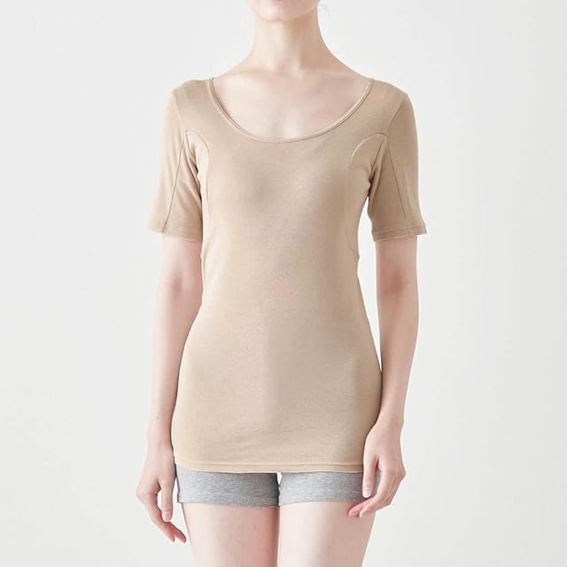 [ベルメゾン] 汗取りインナー レディース 綿 特大汗取りパッド付き 三分袖 消臭 インナーシャツ サラリスト オフホワイト M