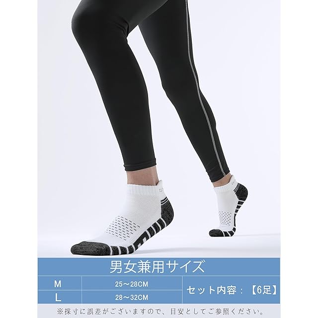 【サイズ・天然素材】サイズ:M: 25-28cm L: 28-32cm 素材:ふわふわ柔らかな履き心地が気持ち良い天然綿素材を採用して、クッション性があり、通気性が抜群です。通気メッシュ編みで足元の清潔を保ち、有効的に運動中に足の熱量と水分の分散を促して、快適で運動を楽しめます。