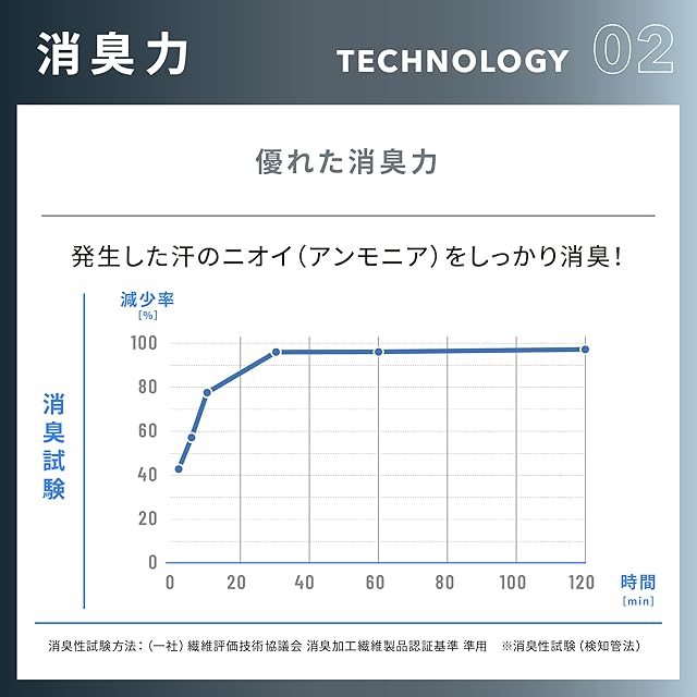 生地自体に消臭機能搭載、100回洗濯後も効果が持続します。