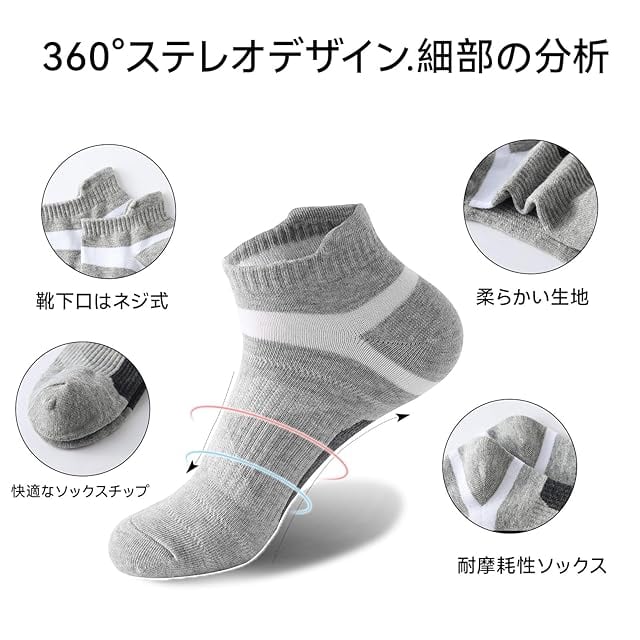 【抜群な履き心地】ロールエッジがなく、滑り落ちない、かかとへの負担を和らげる。丈夫で割れにくく、毛羽立ちにくい 肌に優しく、通気性、防臭性に優れ、社会的な恥ずかしさを避けることができる。一体化縫製デザインを採用し、踵と靴の摩擦を軽減し、履き心地が良くなり、耐久性も優れています。