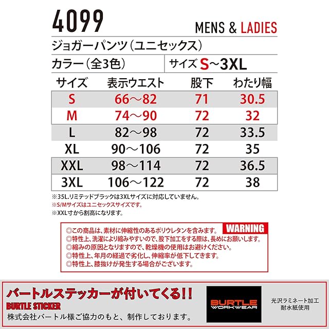 [プロユニ] [バートル] ジョガーパンツ 4099 ストレッチ 吸汗速乾 消臭 メンズ レディース 作業着 作業服 夏 おしゃれ BURTLEステッカー付 [68.ミルスグレー XXL]