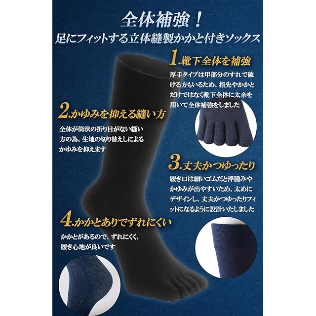 ✔【一年中役立つクルー丈】スーツでも肌が見えないちょうど良い長さ。(かかとから約23cm)肌触り、通気性、吸汗性にこだわった丁度良い厚さなので一年中使用できます。ビジネス・カジュアル・冠婚葬祭・スポーツにも良し。✔【足にしっかりフィット】丈夫な履口と丁寧で細い編み方で全体フィットし、柔らかくズレにくいです。人体工学立体成形でかかとにピッタリで擦り切れにくいです。もっと踏ん張れます!