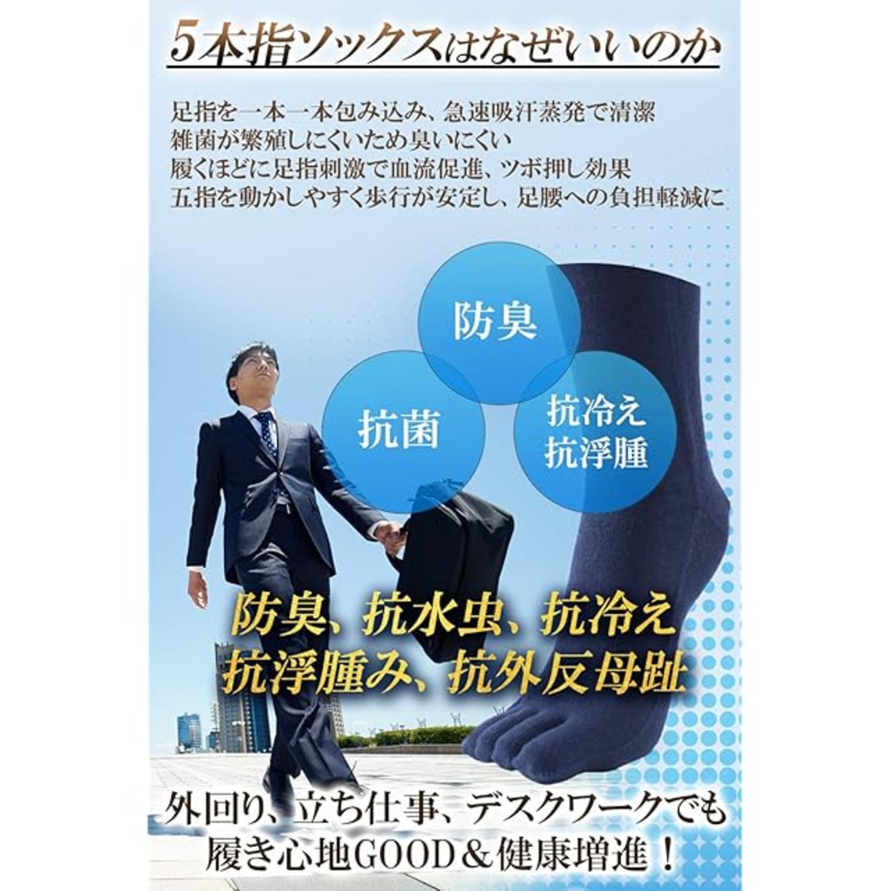 ✔【本当に防臭したい人のための5本指。抗菌・防臭加工】ついに出た!20時間履いても臭くならないソックス「極(きわみ)」!表糸に抗菌防臭作用のある麻混のまほろば綿、裏糸に強力な消臭作用のある旭化成ROICA CFを使用。綿混で蒸れにくく、さらっとした履き心地です。 ✔【「極」の約99%消臭効果】20時間履いても臭くならないソックス「極(きわみ)」の消臭効果を確認したところ、気になる臭いの元をがっつり約96~99%消臭していました。また、10回お洗濯しても効果はほぼ変わりませんでした。ぜひ一度、お試しください!!
