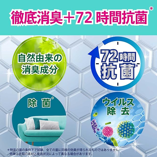 3D浸透除菌*で、繊維の奥まで消臭・除菌成分が浸透。消臭・除菌・ウイルス除去さらには72時間抗菌も。*特定の菌・条件下で試験。対象外の菌もあります