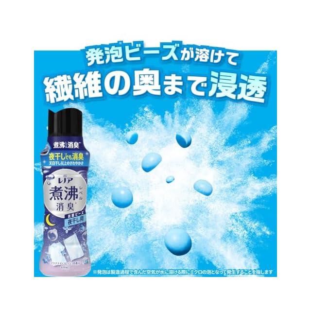 抗菌ビーズは、衣類の消臭専用のお洗濯ビーズ。いつもの洗剤や柔軟剤に加えるだけで、夜干しのニオイまで煮沸レベルに消臭* (*洗濯後・部屋干しにて検証。)