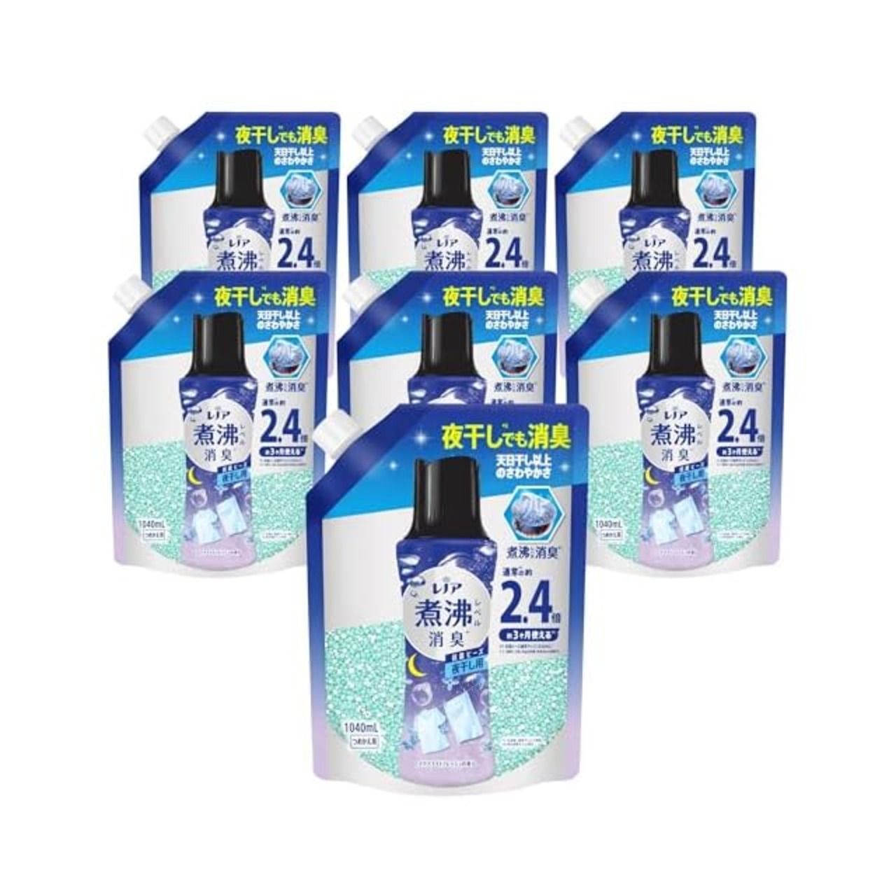 レノア 超消臭 煮沸レベル消臭 抗菌ビーズ 夜干し用 アクアナイトフレッシュ 詰め替え 1,040mL×7袋 [大容量] [ケース品]