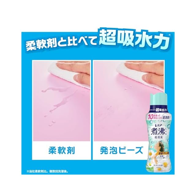 柔軟剤に比べて超吸水力* (*当社柔軟剤比。複数回洗濯後。)