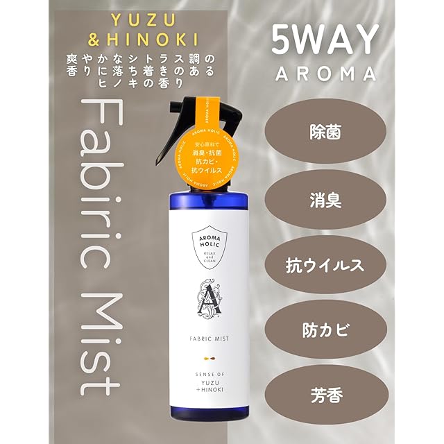 【1本5役 アロマミスト ユズ&ヒノキ 】アロマホリック ファブリックミスト 250ml マスク 枕 靴 除菌 抗ウイルス 消臭 防カビ (250ml)
