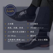 究極の素材と匠の技で作り上げた「日本製ビジネスソックス」。 海外産でお手ごろな価格のものが溢れる中、素材や品質がちょっぴり気になるトコロ。そんなあなたにこそぜひ試して頂きたい。 国内一の靴下生産の街、奈良県広陵町で生まれたビジネスソックスです。 夏でも涼しい綿麻素材を使用することにより、皮膚に触れたときの冷感に優れ、綿麻特有の爽やかな感触が夏の定番に。 吸湿、放出性も抜群ですのでサラリとした感触を持続させます。 裏糸には消臭加工糸を使用することで気になる臭いを解消してくれます。蒸れやすい季節にも最適☆ つま先とかかとを補強することにより長くお使いいただけるようになりました。 細部にまでこだわりぬいた究極のビジネスソックスを是非お試しください。