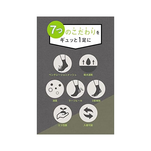 【集中消臭・吸水速乾・穴があきにくい】穴のあきやすいつま先かかと部分を補強し、汗をかきやすい指の付け根にベンチレーションメッシュ設計を採用。吸水速乾素材を使用しているのでさらっと快適に履いていただけます。