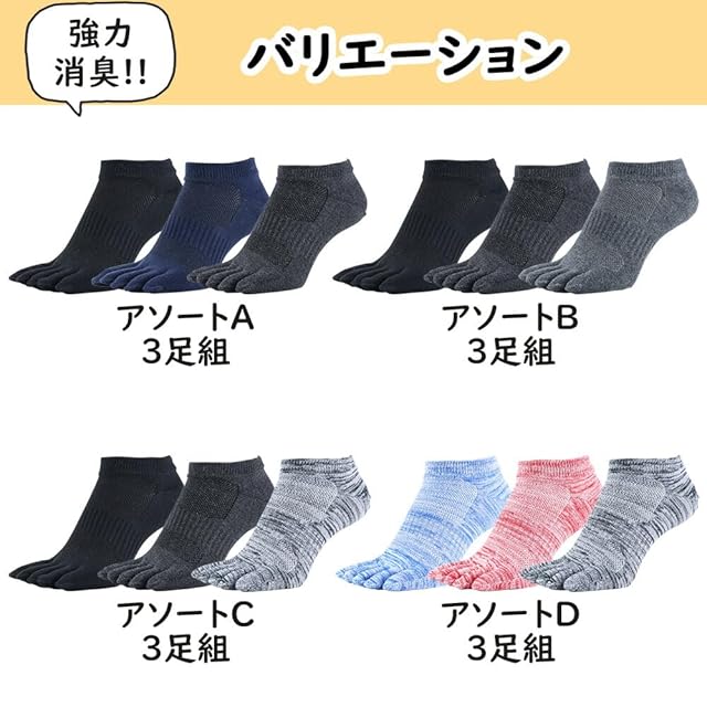 [アスカ] 5本指ソックス 旭化成消臭ROICA使用 くるぶし丈 メンズ レディース 27-29cm 3足