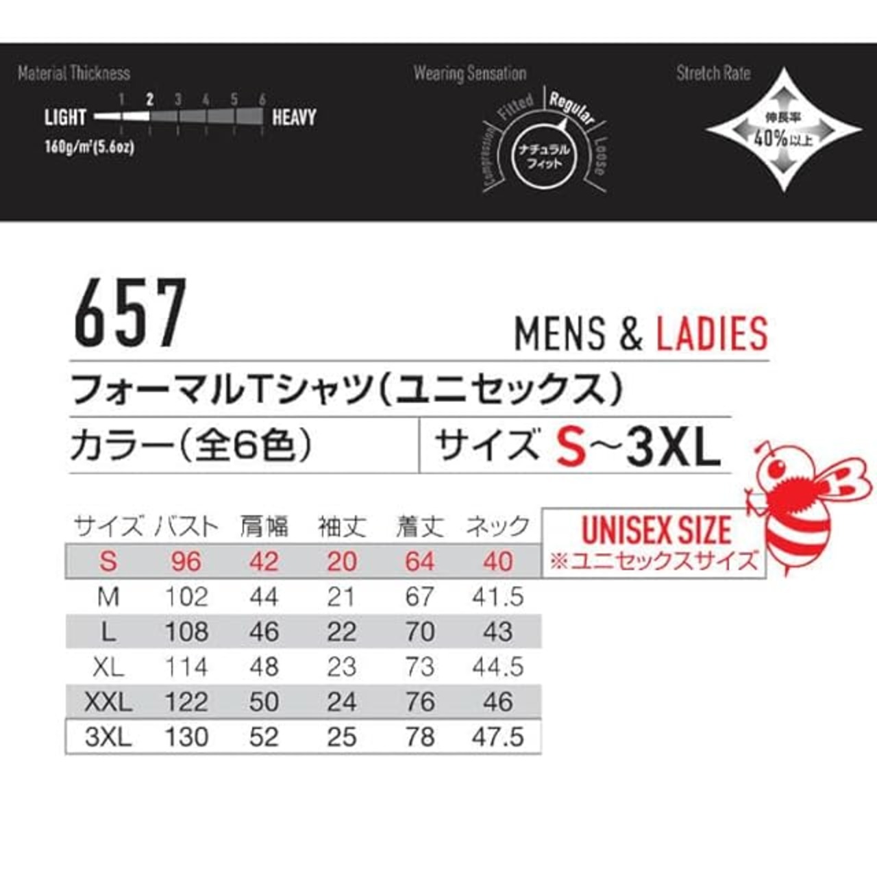 [バートル] フォーマル Tシャツ (ユニセックス) 657 半袖 ストレッチ 消臭 L 3ネイビー