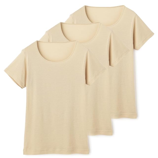 [アオキ] 涼感タイプ 消臭肌着 3枚組 信州大学 産学協同開発 5大消臭 通気性 抗菌防臭 吸汗速乾 半袖 Vネック クルーネック メンズ 【涼感:Uネック】 ベージュ(STU2564B3P) 3L