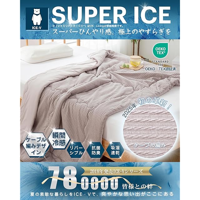 【進化を続ける「ICE-Vシリーズ」7周年記念!】人気のICE-Vシリーズ、今年で7周年!5年連続敷きパッド第1位、掛け布団第1位、タオルケット第1位、3冠達成!合計78萬枚突破!大変多くのご注文をいただき、本当にありがとうございます。OEKOTEX認証済、ISO9001認定工場、Transparencyによる確認済、最高の眠りを提供します!「ICE-Vシリーズ」は、これからも進化し続けます。
