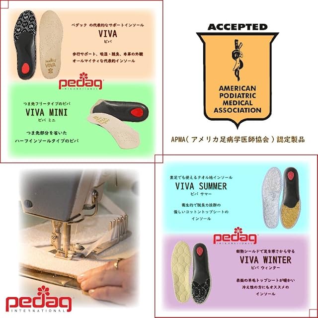【タオル地の素足でも使えるインソール】APMA(アメリカ足病学医師協会)認定製品。素足で履いても心地よいテリークロス(タオル地)をトップシートに使用したビバ。ドイツ Trevira社製の抗菌生地「バイオアクティブ」を使用しており、銀イオンの効果により雑菌の増殖を防ぎつつ、汗を吸収し靴内を清潔に保ちます。下層のシサル麻フィルターは通気性に優れ、靴内をドライに保ちます。素足で履きたい靴やブーツ類に最適です。